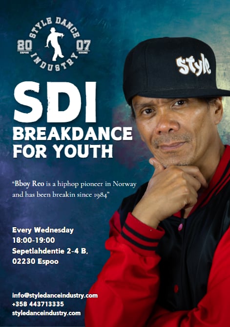 Espoo,  Finland.  Ricky continues to hold dance classes in different academic schools in Espoo city.  His objective is to reach out to immigrant youth through dance to help them reintegrate well in the society.  He also conducts and supervises free dance classes specially designed for them in various places.  For more information about these free hiphop/street dance classes, please contact ricky@styledanceindustry.com  and reserve your post as soon as possible.  First-come-first-served